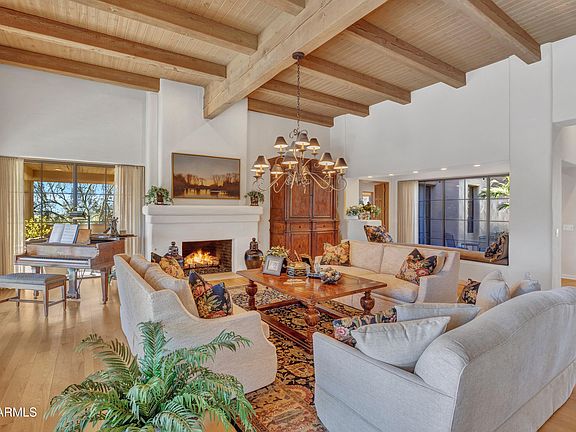 IMMEDIATE GOLF MEMBERSHP AT CLOSE OF ESCROW. Timeless elegance situated on a large private lot surrounded by stunning mountain views and the beauty of the Sonoran Desert. Quality craftsmanship & attention to detail throughout. The functional layout includes a warm and inviting formal living room, dining room, convenient kitchen with adjacent morning and breakfast room. The owner's retreat is spacious and secluded ~ sitting room with fireplace, dual primary baths, and private access to the backyard. 2 guest bedrooms with ensuite baths in the main house + guest house with living room, bedroom & full bath. Expansive covered patio with sparkling pool and heated spa, linear fire pit, outdoor living room with fireplace, built-in BBQ + 360 degree views from the observation deck. Designated a top 'Platinum Club of America'' golf club, Desert Highlands amenities include a Jack Nicklaus championship golf course, 18-hole putting course, award winning clubhouse featuring ''Jacks'' gastropub, state of the art fitness center, Highlands Racquet Club featuring grass, clay & pickleball courts,& more. A $190,000 membership fee is due from buyer at close of escrow (Increase to $205,000 on 1/1/2026)