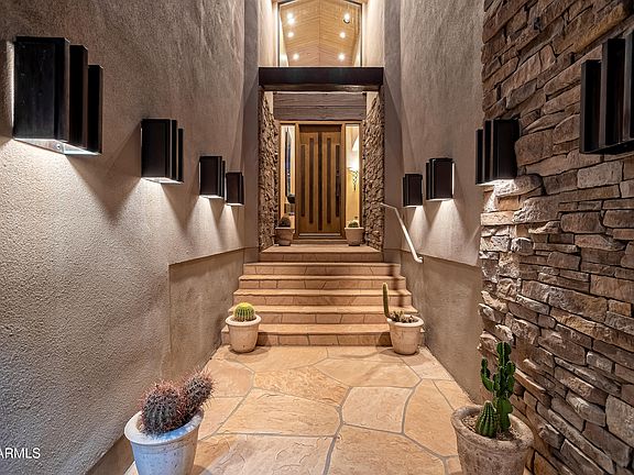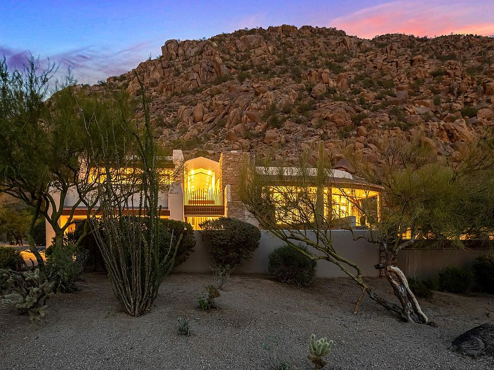 IMMEDIATE GOLF MEMBERSHIP AT CLOSE OF ESCROW. Charming southwest contemporary, perched on a one-of-a-kind hillside lot surrounded by open space and privacy, offering a birds-eye views of the surrounding mountains, city lights and sunsets! Stunning architectural design and layout features a great room floor plan, convenient kitchen, cozy breakfast room surrounded by walls of glass and majestic mountains. Designed with comfort in mind, each bedroom offers privacy, ensuite bath and opens to a private patio. 4-car garage for the car enthusiast. Designated a top 'Platinum Club of America'' golf club, Desert Highlands amenities include a Jack Nicklaus championship golf course, 18-hole putting course, award winning clubhouse featuring ''Jacks'' gastropub, state of the art fitness center, Highlands Racquet Club featuring grass, clay & pickleball courts,& more. A $190,000 membership fee is due from buyer at close of escrow