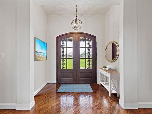 Up to 10k in Concessions. Welcome to your peaceful sanctuary in beautiful Horse Country! This charming 3,050 square foot home sits gracefully on 2.57 acres of prime sandy loam soil, where you can truly feel at home. As you enter the residence you will immediately notice the perfect blend of modern features with rustic undertones. Custom built-ins throughout the home show off the level of craftsmanship, exceptional artistry, and meticulous attention to detail evident in every appointed space. Enjoy the thoughtful layout featuring dual primary suites at opposite ends of the home, perfect for families or guests who value their privacy. Recent upgrades include gorgeous new hand scraped, scratch proof, hard wood flooring throughout the home, along with complete kitchen and bathroom updates. The spacious, pipe fenced backyard boasts a firepit seating area and an expansive covered back porch, perfect for outdoor entertaining and relaxation. As you step into the garage you will notice the epoxy floors and ample space available. The convenient staircase located in the garage allows attic access, which offers wonderful storage space for all your belongings and seasonal items. Your horses will be equally comfortable in the well-appointed 3-stall barn and a wash rack. The property cross fenced with pipe fencing, giving you peace of mind while your animals enjoy the freedom to roam. Great location for an outdoor riding arena. Beautiful new landscaping adds to the property's natural charm and creates a welcoming atmosphere you'll be proud to call home. Living in Pilot Point's beloved horse community means you'll be among friends who share your passion for equestrian life. You'll have easy access to local trails and events, while enjoying the tranquility of country living. The financial benefits are wonderful too – with only a 1.21% tax rate, NO CITY TAXES or HOA.