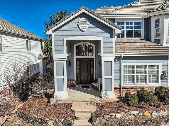 WELCOME to Lone Tree’s beautiful Carriage Club neighborhood! Exceptional golf course location on the 18th fairway of Lone Tree Golf Course including stunning views of Hole #17! This spacious 4-bedroom, 4-bath home offers nearly 4,400 sq. ft. of well-designed living space, including two main-floor offices—perfect for remote work or flex spaces. A grand 2-story foyer welcomes you with a gracefully curving staircase, leading to a formal living and dining room with soaring 20-foot ceilings. The open-concept layout is ideal for entertaining, featuring luxurious engineered hardwood floors, designer lighting, and high-end finishes throughout. The completely renovated kitchen (2017) showcases top-tier craftsmanship, including a paneled built-in SubZero refrigerator, Wolf range with gas burners, griddle, and steam convection oven, and a custom pantry door by Ricky Schlueter. A coffee bar with a built-in filtered water faucet adds convenience. Step outside to the oversized Trex deck, designed for year-round enjoyment, featuring a built-in gas BBQ with sleek granite countertop, gas fire pit, covered roof with rich wood ceiling, ambient LED lighting, and a ceiling fan for added comfort. Upstairs, the primary suite is a true retreat, offering a sitting area, dual closets, a 5-piece bath, and an expanded private balcony. The upper level also features a loft, a bedroom with en-suite bath, and two additional bedrooms connected by a Jack-and-Jill bath. The 2,300 sq. ft. basement is ready to be finished, offering unlimited potential. Additional highlights include a newer dual-zone furnace and A/C system, a 3-car garage, and a durable concrete tile roof. Prime location near Charles Schwab, light rail, SkyRidge Hospital, I-25, C-470, and Park Meadows Mall. Plus, just a short walk to Bluffs Regional Park, featuring miles of scenic hiking and biking trails with breathtaking mountain views. Visit our 3D Virtual Tour at www.10040Longview.com!