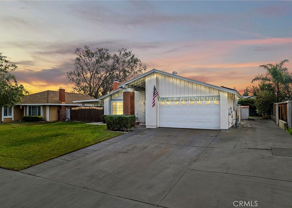 $10,000 Price Improvement!! This is the home you've been waiting for! POOL, JACUZZI, RV PARKING, SOLAR, BIKING/WALKING TRAIL!!!! This inviting and TURN-KEY SINGLE-STORY home boasts 4 bedrooms and 2 bathrooms and is an entertainer's dream! The living room is in the front of the house and has a cozy wood/gas fireplace with a TV mount above the mantle. The light and bright kitchen with quartz countertops and backsplash overlooks the private and securely fenced backyard pool area so that you won't be left out when you are preparing the goodies for your family and friends. Enjoy baking in the double oven or cooking on the 5-burner stove with a griddle. Tile throughout the home as well and instant hot water in the kitchen with the under-the-sink, tankless water heater. The pantry has lots of shelves for that extra storage and down the hall, you'll find even more storage and the bedrooms and the guest bath. The first bedroom has a double-door entry. Walk out of your master suite and into your relaxing and private heated jacuzzi right outside of your door. The pool also can be heated and has a ledge for just hanging out in the 7ft deep end. The backyard is incredibly spacious and private with a tall dense hedge along the entire backyard. It has two alumawood patio covers, both wired for electricity, and one is equipped with an outdoor ceiling fan. The low-maintenance backyard is pre-wired for speakers too. The pool has been resurfaced, tile redone and a new light installed a few years ago. Auto-sprinklers front and back, LOW taxes, NO HOA, newer HVAC and AC, water heater and double-paned windows, 2 sheds, Gated RV parking is approx. 30ft. by 9' 6" and the garage door opener has Wi-Fi capability plus HUGE savings on your utility bills with the SOLAR. It's a short walk (.3 miles) to the Santa Ana River Trail and very close to the Hidden Valley Nature Center. If you love walking or riding your bike, THIS IS A HUGE BONUS! Get ready because this one will go fast!