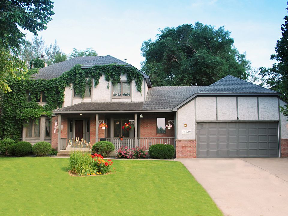 Two Story English Tudor, Stucco and Brick Exterior Attached 4 Car Garage (Tandem)