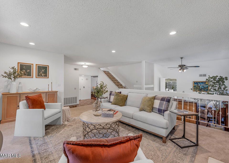 Outside, the property boasts lush fruit trees, offering a serene backdrop for outdoor relaxation. The back yard features a pergola that keeps the temperature down during the warm afternoons, creating a comfortable outdoor oasis.