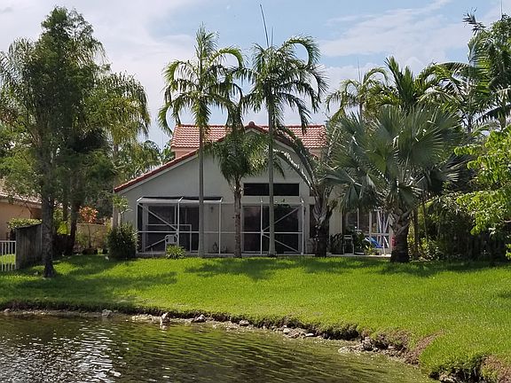 Contemporary, 3/2 lakefront home with over 2300 sq ft. Light, bright & airy...lots of windows, high ceilings & a lot of wall niches to display your art & decor. Open concept floor plan with atrium converted to enlarge kitchen, 3 screened patios, 2-car garage, foyer entry, laundry room, jetted tub + separate shower in master bath, newer tile floors. Located on quiet, safe cul-de-sac. Well-kept, fresh paint, newer barrel-tile roof...move right in. Gated community, pool...just across street, great neighborhood, Central Park Elementary ("A" rated school), walk to shopping & worship.