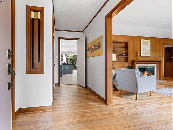 Experience comfort and style in this mid-century rambler with an ideal entertaining and main-level living layout. With fresh exterior paint and newly refinished Oak floors, this home showcases a harmonious mix of modern upgrades and timeless features, including extensive millwork and built-ins, adding a touch of elegance throughout the expansive spaces. Step into the living room, highlighted by a wood-burning fireplace with an original tile surround and coved ceilings. The formal dining room boasts a double-sided built-in pass-through from the living room and a leaded glass built-in hutch. The kitchen features new quartz counters, luxury vinyl tile floors, freshly painted cabinetry, stainless steel appliances, a pantry, and a brand-new sliding door to the deck, creating a seamless indoor-outdoor flow. An adjacent family room with a wood-burning fireplace and a convenient half bathroom offers even more living space, plus a second new sliding door to the deck. Retreat to the primary bedroom, providing ample space for a relaxing sitting area. The main floor is complete with a second bedroom and a shared hallway bathroom with tile finishes. The lower level includes a second family room with a fireplace, a third bedroom with an egress window and built-in storage bench, an updated full bathroom with a tile surround walk-in shower, a laundry room, and two large storage rooms. Enjoy the privacy of the fully fenced backyard, perfect for Fido, and a brand new deck for outdoor entertaining this summer. Don't miss the toolshed and a patio with an overhead pass-through door to the garage.