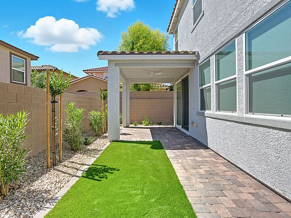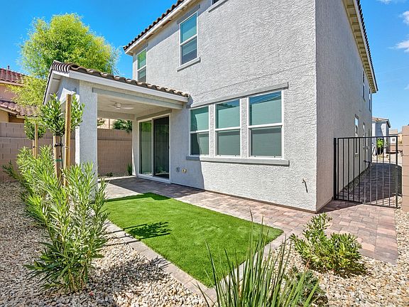 Stunning 2025 newly built home in a gated community in Southwest Las Vegas. Situated on a corner lot with an extra large drivewsy, this spacious home offers 5 bedrooms, a loft, and 4 bathrooms, including a primary bath with dual sinks. The open floor plan boasts many modern upgrades throughout, is filled with natural light and features recessed lightning throughout. The modern kitchen boasts quartz countertops, a center island with sink, walk-in pantry, and stainless steel appliances. Additional highlights include a LOFT, new washer and dryer, water softener, and a 2-car garage, and an amazingly upgraded backyard with turf and pavers. As an Extra Added bonus, Landscaping, Trash & Sewer are Included in rent!