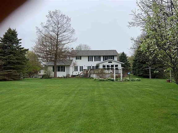 2.5 Acres that backs up to forest preserve with 8x20 shed. Covered front porch, large deck and beautiful perennials. This home features refinished red oak hardwood floors throughout most of it. Large light & bright Kitchen with loads of cabinets, breakfast bar, SS appliances & French doors to 3 Season Room. Large 1st floor Laundry/Pantry. Plumbed also for 2nd floor Laundry. White interior trim & doors. 3 nice sized Bedrooms and 2.1 Baths. Make this home your own. Great location. HSA Warranty.