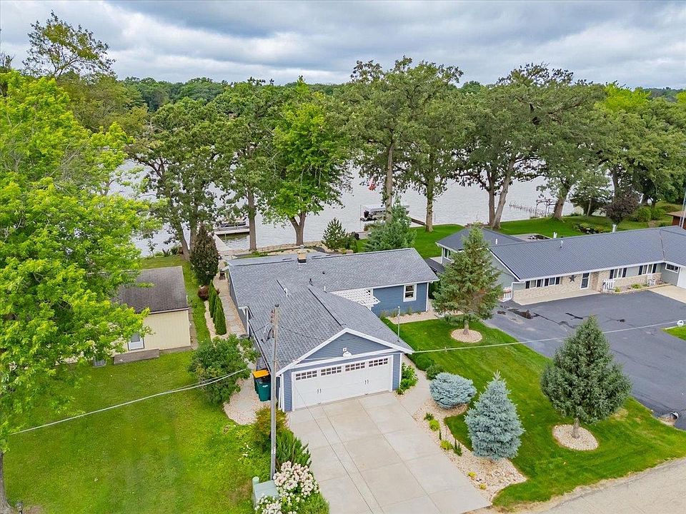 Welcome to waterfront living at its finest! Nestled on the Rock River with direct access to Lake Koshkonong, this beautifully updated home offers panoramic views, a newly terraced shoreline, and a floating pier for boating and fishing. Enjoy an open floorplan with vaulted ceilings, skylights, and French doors that lead to a Trex deck and tranquil waterfall pond. The kitchen features new KitchenAid appliances, butcher block counters, and a farm-style sink. A separate buildable lot available includes a massive 36'x29' detached garage?perfect for workshops, boat storage, or future expansion. Package deal for $850,000. With a new roof, peaceful setting, and year-round recreation at your doorstep, this home is perfect as a full-time residence or weekend getaway.
