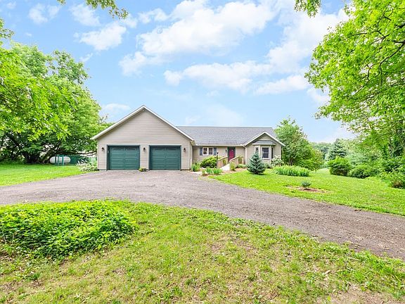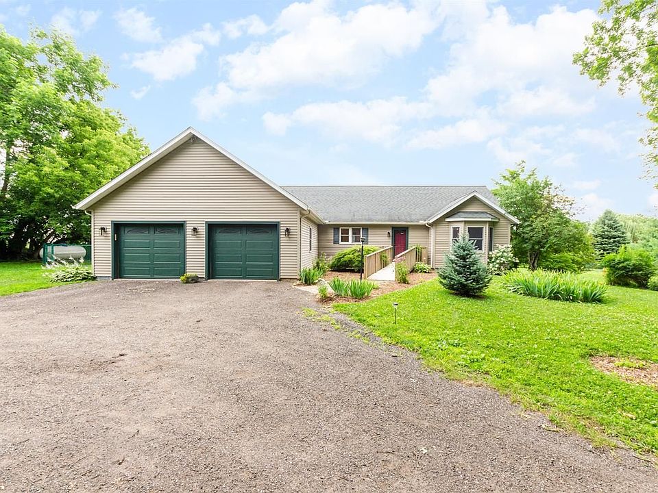 Back on the market at no fault of the home! Really sharp ranch home on a gorgeous 2 acre setting backing to farm fields and surrounded by woods. The entire back yard is fenced with a large deck, making it perfect for pets, kids, gardening and entertaining. Step inside the spacious and open concept floor plan featuring gorgeous maple floors, vaulted ceilings, first floor laundry, a generous kitchen with maple cabinetry, new dishwasher, new fridge, loads of c-tops space for meal prep and tons of storage. The first floor master suite is large enough for extra furniture, features a generous walk in closet and master bath. The two guest bedrooms have brand new carpeting and light fixtures. Downstairs has a huge recreation area with brand new carpet, daylight window and massive amounts of storage. Additional updates and features include-new exterior and interior light fixtures, professional interior painting throughout, generator ready panel, exterior trim painting, a terrific out building for mower/ bike/ snow blower storage, freshly stained deck and more. A relaxing environment and lovely place to call home!