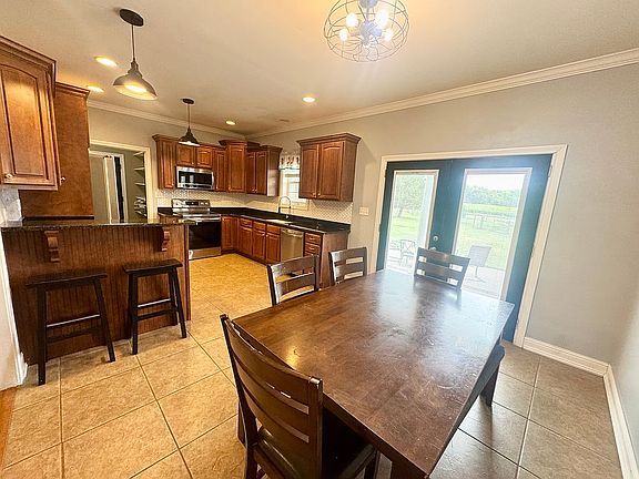 If you’re looking for a little slice of peace among the hectic world, this home is for you. Only a short commute to Clarksville TN, Fort Campbell and Hopkinsville KY, this property spans 2.49 acres and offers a spacious 5 bedroom, 2 bath home with an attached large insulated garage. The kitchen has been recently remodeled with granite countertops, new backsplash, under mount sink and new faucet. This house has had numerous upgrades including a new roof, new siding, and a new HVAC system completed in 2022. The upstairs spacious bonus room isn’t included as a bedroom, but has great possibilities for family space. House includes an on-demand hot water heater, and high-speed fiber optic internet is also available. The covered wrap around front porch, and covered back porch with patio, creates an inviting space to spend watching the amazing sunsets here. This leveled property also includes two detached storage sheds, painted to match the rest of the out buildings.