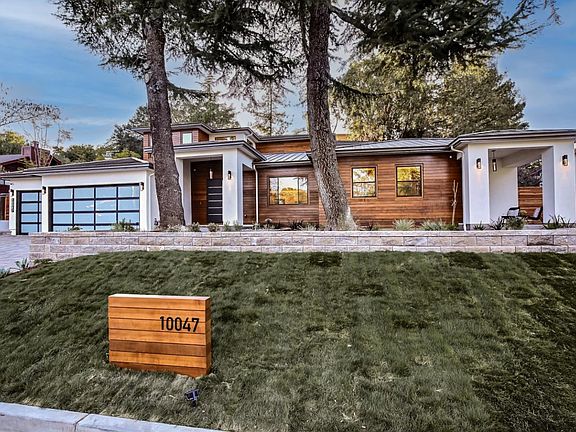Substantially remodeled contemporary home (only partial foundation & only few walls were kept from originally built) High coffered ceilings, Marvin windows, w/accent lighting, expansive open flr. plan w/ sleek dining & living space perfect for entertaining & relaxation. Enjoy the chef's kitchen w/ top-of-the-line Thermador appliances (WiFi), custom quartz countertops, Lusso cabinetry with LED strip lights. The interior offers a ground floor bedroom & 3 upstairs en-suites. The primary suite includes high ceiling, walk-in closet w/ organizer, private balcony w/ views, & luxury bath w/ curb-less shower stall & free standing tub. Other ensuite baths include floor-to-ceiling tile, wall mount vanity, & under vanity LED light. Other unique features include separate ADU, lush landscaping, cedar wood siding, display wine rack w/ LED, Samsung digital lock, & More! Close to award-winning schools (Stevens Creek Elem, JFK Middle, & Monta Vista High), Apple campus, golf course, parks, & trails.