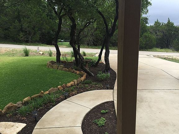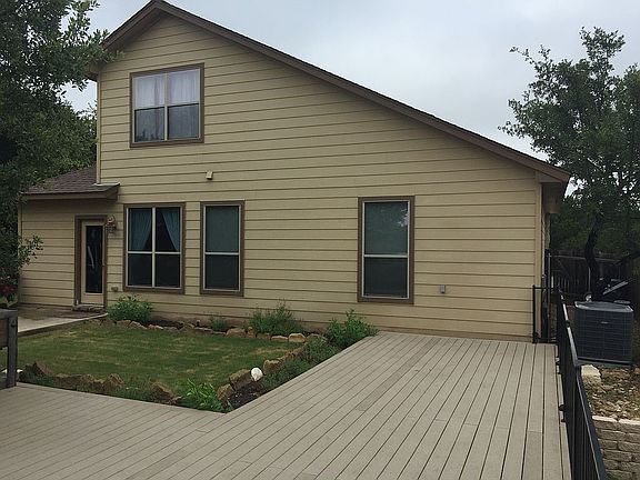 4 side masonry, Oklahoma stone facade in front, hardy board siding on three sides, wood burning fireplace, travertine tile flooring, granite counter tops, custom built cabinets. Living, dining, kitchen, half bath, utility, master suite all on main level. Two additional bedrooms, full bath, extra attic storage, and balcony with hill country view on second level. Two car garage with additional storage area under stairs. 542 sq ft composite deck with iron railing. Lake Travis ISD.