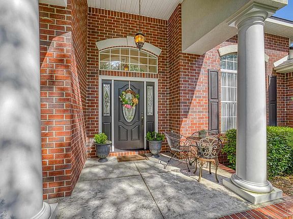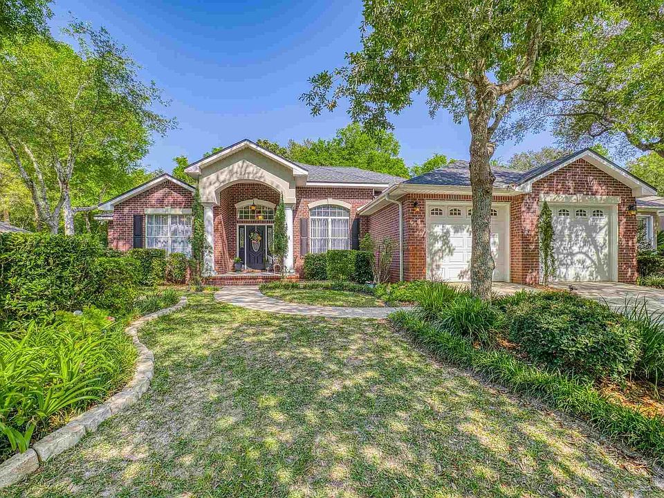 This stately brick four bedroom, three bath homme in the highly desirable coastal and gated community of Heron's Forest is the epitome of luxurious living. Upon entering the custom built home, you're greeted by hardwood floors, soaring ceilings and an open-concept floor plan. The kitchen has been beautifully updated featuring white cabinets, stainless steel appliances, quartz counter top, gas cook top/oven and exudes modern charm. The home also features built-in speakers, central vacuum, hurricane shutters and a phenomenal workspace in the garage. Take the entertaining outside to the impeccably maintained grounds that features an adjacent green space and walking trail for added privacy. Take solace in the safety of the gated community and enjoy the vacation style amenities including tennis/pickle ball courts, basket ball hoop, expansive pool, several trails with Trout Point trail leading to the pristine beach area and enjoy the the awe inspiring sunrises AND sunsets.