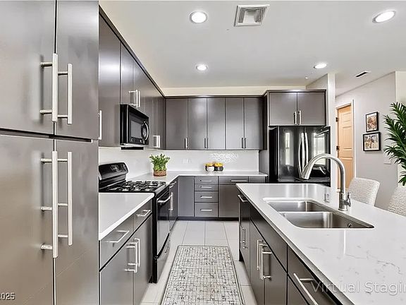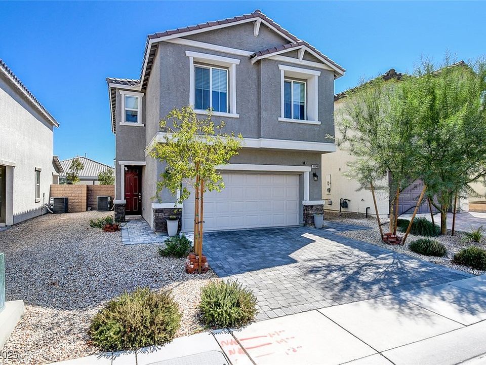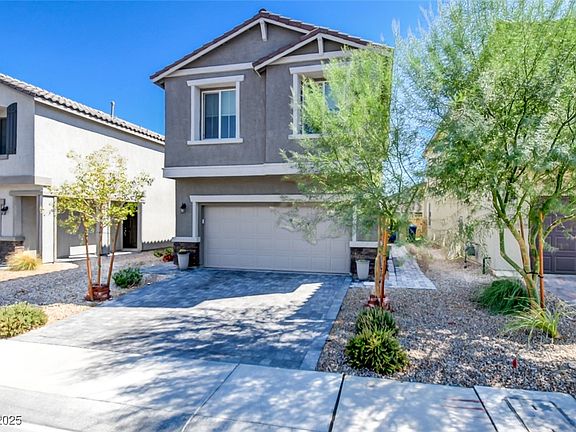 Welcome to your modern retreat in Silverado Ranch! This beautifully updated home offers a bright, open-concept floorplan designed for both everyday living and effortless entertaining. The stylish kitchen flows seamlessly into the living space, featuring granite counters, designer backsplash and island seating. Dual sliding doors off the kitchen and living room open to the backyard, creating the perfect indoor-outdoor connection. Upstairs, unwind in the spacious primary suite with its own private balcony, walk-in closet, and spa-inspired bath. A versatile loft separates the secondary bedrooms, offering the ideal blend of connection and privacy. Outdoors, enjoy the serenity of a low-maintenance yard with lush synthetic grass, a covered paver patio, and pavers extending along the side of the home. Ideally located just minutes from the excitement of the Las Vegas Strip, yet tucked away in a peaceful neighborhood that offers quiet comfort at the end of the day