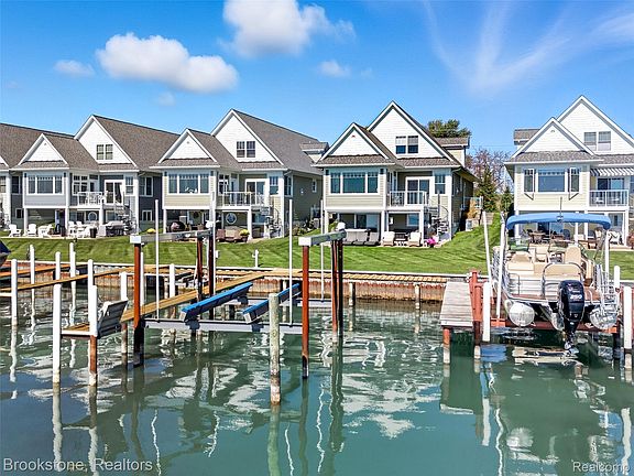 Luxury lakeside property! Rare opportunity to own a stunning, custom 3-level home with approximately 3,558 sq. ft. of finished living space and unbeatable water views and lake access. Main level living features a bedroom and full bath, spacious living room with fireplace, bright kitchen, sunroom, and laundry. The upper level offers three additional bedrooms and two full baths. The lower walkout is a boater’s-entertainment dream—bar, large living/dining areas, cozy fireplace and ample storage/utility space. Professionally painted rooms and custom window & door blinds throughout. Step outside to a beautiful aggregate patio with hot tub, outdoor television and remote screens for full patio enclosure, then walk right to your private dock equipped with a 24,000 lb electric boat hoist and electric, remote waverunner/jet ski lift. Additional boat slips are available for visiting family and friends. Convenient dockside electric and water. Enjoy world-class fishing, boating, kayaking—and in winter, ice fishing, skating and snowmobiling—right from your own backyard. Short bike ride or boat cruise to charming downtown New Baltimore’s restaurants, boutiques, farmer’s market and marina. Easy access to expressways—just 10 minutes to I-94. Wake up and close the day with the most amazing sunrises and sunsets.