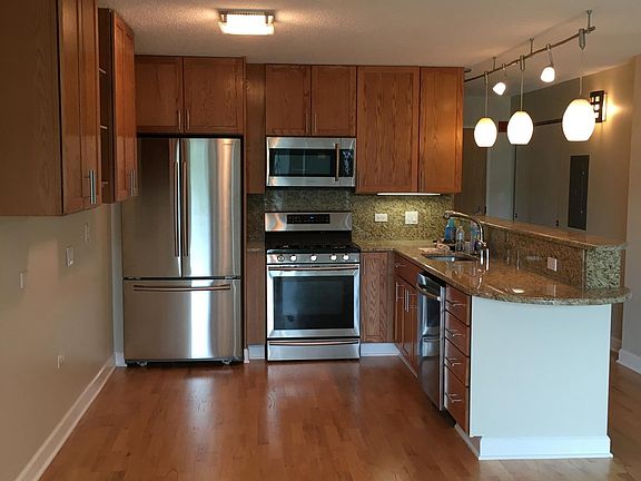 Amazingly renovated and spacious 1bedroom/1.5 bath condo for rent. Unit features new hardwood floors and new kitchen with stainless steel appliances and granite countertops, a large on-suite bathroom, an additional powder room for guests and spacious closet space throughout. Great balcony with amazing views of the forest preserves and entry fountains thought the units floor to ceiling windows. Washer/dryer in unit. The building also offers a gym, indoor pool, tennis courts, grills aside the pond, sundeck and daily/overnight guest parking. Package receiving area and dry cleaners on the property. Building is within walking distance of forest preserves, hiking and biking trails, and with in minutes of Old Orchard shopping mall and other shopping areas and restaurants. Available July 1st for $1850/month including an indoor/heated parking space. Tenant responsible for extended cable, electric and internet.