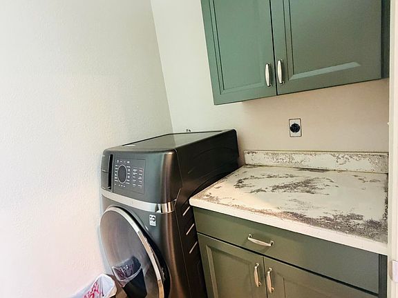 The heart of the home is the kitchen, featuring custom concrete countertops, freshly refinished cabinets, and a full suite of newer appliances including a refrigerator, stove, dishwasher, microwave, and a convenient washer/dryer combo. The cozy living area is anchored by a charming fireplace, perfect for North Dakota winters.