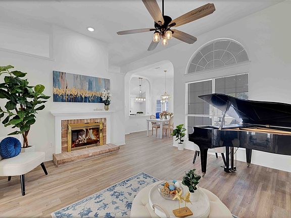 Modern bathroom fixturesCharming single-story brick homeBeautiful quartz countertopsSoaring vaulted ceilingsSpa-like primary bathSpacious light-filled open-concept layout