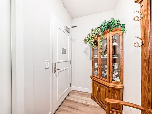 Wow this home shows better than new!! Freshly painted throughout. Newer vinyl flooring throughout. Cabinets are like new. This one bedroom condo is on the main floor with 3 parking stalls. 1 parking is conveniently situated by your patio, and the other two are close to your elevator underground with your storage unit. Walking in your are welcomed by a great size entry way complete with coat closet. The large living room is large enough for a sectional couch there is a beautiful corner gas fireplace for those cozy nights. The French garden doors lead you to your concrete patio complete with gas BBQ hookup and nice glass finishings. There is a good size dining area as well as a breakfast bar and a galley kitchen with granite counters giving it lots of counter space for cooking and baking. The bedroom will fit king furniture and features a walk in closet as well as access to the bathroom. All of this is also complete with in floor heating. The condo fees include Gas/heat, water, sewer, garbage, management, maintenance, snow removal, lawn mowing and more!! Just move in connect your power and TV/Internet and settle in.