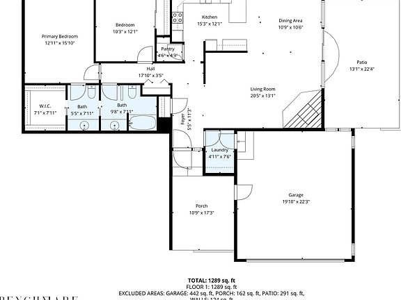- Total interior livable area: 1,289 sqft