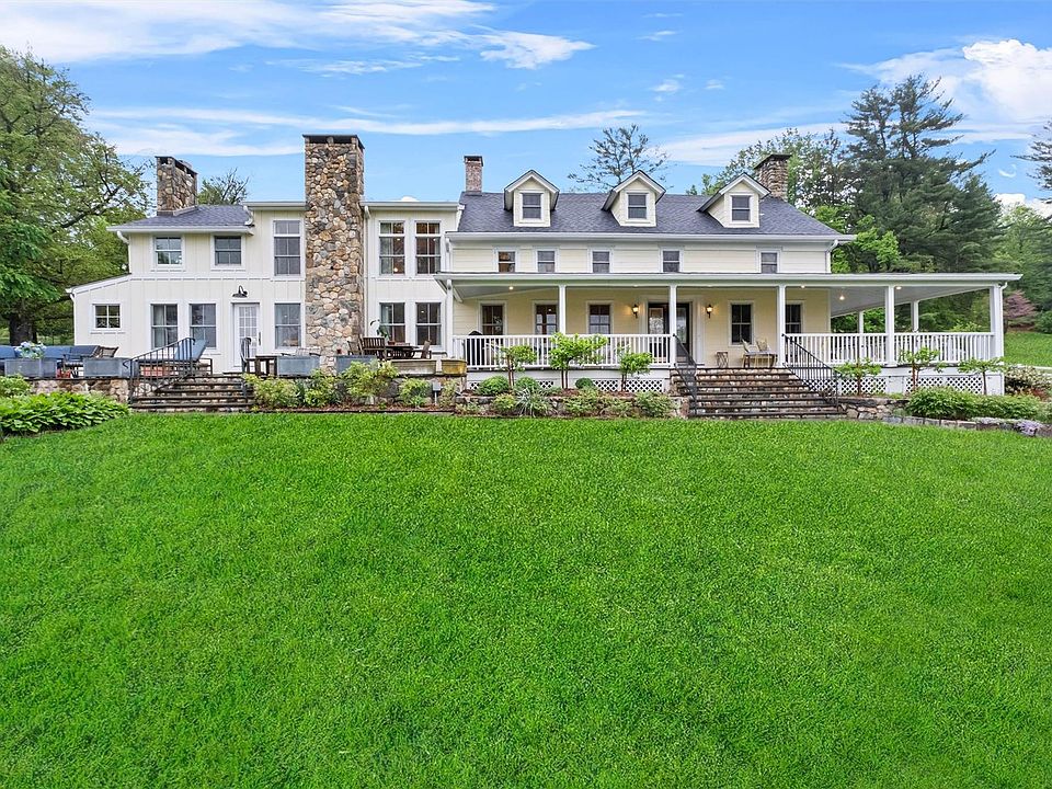 Chapman Farm is the original farm house, at one time set on 300 plus acres. Sitting grandly on the property with distant mountain views and overlooking the magnificent grounds. The most extraordinary, covered, wrap around porch, ever to be seen, including the outdoor fireplace and room for the masses. Upon entering the home, the magic continues at every turn. Be it the five various fireplaces, the rich custom features, the enormous kitchen island, the list is endless. A perfect blend of old-world elegance and updated amenities. Every room is both warm and inviting but expansive for ideal entertaining opportunities. When a home has a front and back stair plus an elevator, the roaming from room to room is enchanting. With exquisite gardens and pathways through the property, wandering the completely fenced in grounds is equally as mesmerizing. All this privacy at the end of the road is convenient to NYC by either car or train.