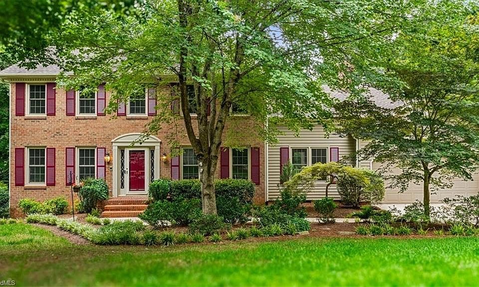 Traditional brick with attached 2-car garage, a rarity for coveted Hamilton Forest. Home delivers the expected flow of separate Living, Dining, Kitchen, Breakfast and Den areas on Main. Originally a 5-bedroom, the long-time owners converted Bedroom on Main to Study. This room directly connects to full bath. Upstairs, Primary suite features 2 closets (1 walk-in) and renovated Bath with walk-in shower. 3 other bedrooms upstairs, one with direct access to full bath. Gracious, mature landscaping on manicured .31ac lot. Dedicated workshop space in rear garage. Relax outdoors on large deck – as well as at multiple public recreational spaces in Hamilton Forest: Cascade Park playground, Luper Park field, and Brown Bark loop and sledding hill. Convenient in-town site a short (even walkable) distance to Friendly Center, Bog Garden, and Bicentennial Garden. Property is attractively priced for next owner to update as they choose. Roof (2016), HVACs (2014, 2019) and Electric WH (2014).