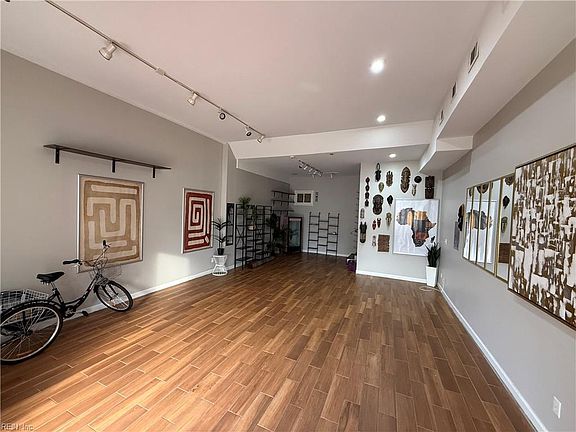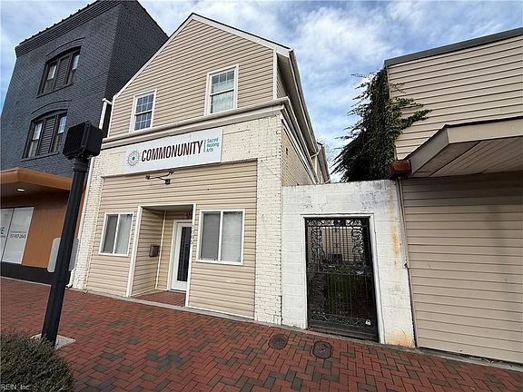 Unique mixed-use asset positioned in the heart of South Norfolk’s downtown district, offering both street-level commercial visibility and rear residential income. The front commercial suite features an open, gallery-style layout with updated lighting, modern flooring, and a dedicated restroom—ideal for retail, studio, office, or wellness use. Behind the storefront sits a two-unit residential configuration, each with separate access, providing diversified income streams on one parcel. The rear of the property offers off-street parking, fenced outdoor space, and storage sheds, adding functional utility for both tenants and ownership. Exterior features include brick walkways, alley access, and classic neighborhood architecture. Located just minutes from major commuter routes, shipyard access, dining, and shopping, this property blends location, flexibility, and income potential into one versatile investment opportunity.