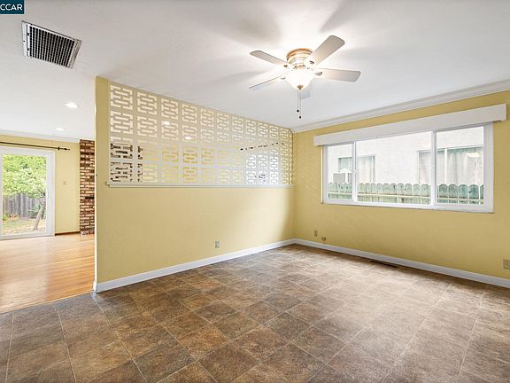 An ideal opportunity to bring your vision to life, this single-story home offers 4 bedrooms, 2 bathrooms, and a central location with excellent potential. Inside, the floor plan is designed for connection, featuring a living room anchored by a fireplace with direct access to the backyard, plus a dining area that flows easily for gatherings and everyday living. The kitchen includes an island and pantry that link seamlessly with the dining and family spaces, making the home well-suited for entertaining. Hardwood floors in several rooms add character, and the versatile bedrooms and bathrooms provide space to fit a variety of needs. The backyard retreat includes a patio, level lawn, and mature fruit trees including lime, pomegranate, and pear, creating a welcoming outdoor setting with room to enhance. A recently replaced garage door adds a thoughtful upgrade. Set on the Walnut Creek border, this home is close to Oak Grove Plaza, De La Salle and Carondelet High Schools, multiple neighborhood parks, and freeway access to 680. Commuters will also appreciate proximity to BART and local transit, connecting throughout the Bay Area. Combining location, space, and potential, this property is ready for its next chapter.