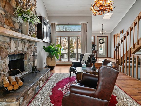Step into an extraordinary world of elegance and tranquility with this breathtaking 4,000+ square-foot home, ideally positioned along 83 feet of lakefront & a cul-de-sac. Offering a harmonious blend of timeless craftsmanship and modern luxury, this home presents an unparalleled opportunity to experience resort-style living every day. New Roof & New Decks, ensuring peace of mind along with German Schemer Brick exterior, a rare and beautiful touch that elevates the home's architectural appeal, all gives an enjoyment of the outdoors. Two Gorgeous gas Fireplaces to the New Sliding Glass Doors, seamlessly connect the indoors to the expansive lake views beyond. Pergola creates an added outdoor retreat, ideal for al fresco dining and relaxation. Gourmet Remodeled Kitchen & Spa-Like Bathrooms featuring high-end finishes and thoughtful design. The new Furnace & new Water Heater deliver year-round comfort and efficiency. Enjoy the convenience of a Wet Bar upstairs & Built-In Artesian Bar downstairs, with 2 bar refrigerators & mini fridge, perfect for hosting guests in style. Walk-Out Basement boasts reclaimed, hand-crafted barn wood, blending rustic charm with contemporary sophistication. New Front door & Garage door offer a warm Welcome. Two-Story Great Room & Foyer with a stunning shiplap ceilings, adding grandeur and timeless elegance. Rolling Gardens slope gently toward the lake, creating a serene and private oasis for outdoor living. BBQ Pit & an additional campfire Pit set the stage for unforgettable evenings under the stars. Home Magazine-Worthy Design.Open Concept Plan effortlessly flows from room to room, offering both style and functionality for daily living and entertainingThis exceptional home invites you to indulge in the luxurious lifestyle you've always dreamed of. Whether hosting a sunset soiree on the deck or relaxing in the comfort of your own retreat, this is the perfect setting for life's finest moments. Make it yours today.