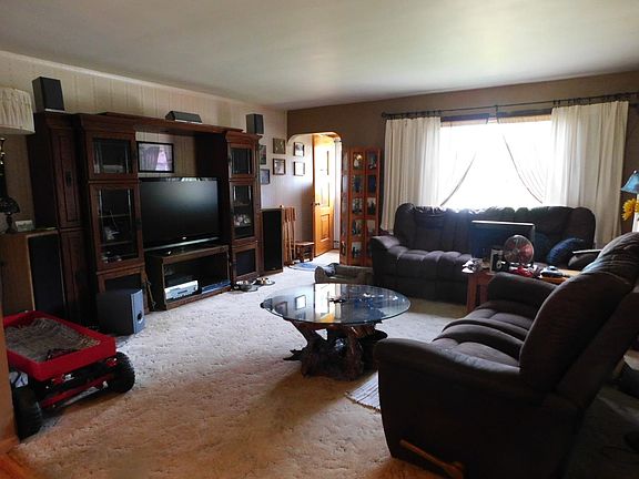 Enjoy this backyard and patio this summer. The seller is hitting the road and this 3 bedroom eastside ranch style home could be yours. Spacious living room, wood floors in the dining along with free standing wood burner for those winter days. The kitchen appliances are all included, and the lower level is mostly finished. Washer, dryer and pool table also included. One car attached garage, and a backyard "Baker Barn" for the remainder of the toys.