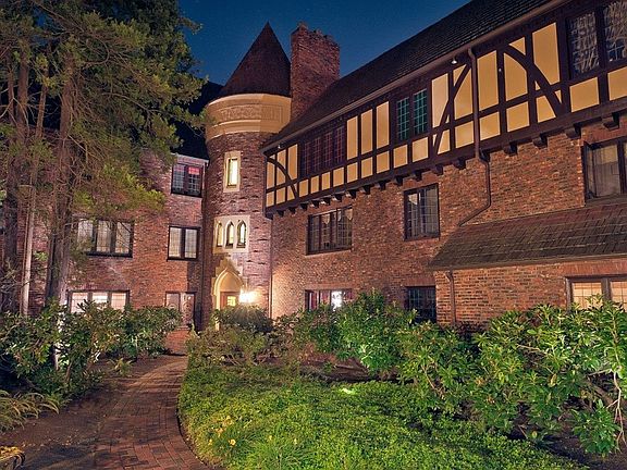 - Exterior features: Beautifully Landscaped Grounds, Built-in Shelving, Coved Doorways, Double Glass Hutch, Easy Online Application, English Tudor Design, Frederick Anhalt, Garden, Large Bedroom, Large Coat Closet, Large Expansive Windows, Living Room Windows with Reading Nook Bench, Medicine Cabinet, Mirrored Closet Door, No Utilities included in rent, Sconce Lighting, Second Entryway Door, Tiled Bathtub, Velvet-Lined Silverware Drawers, Vintage