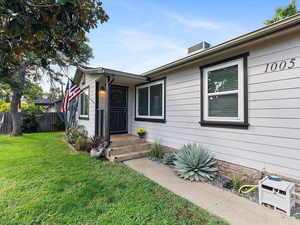 Charming Remodeled Single-Story Home. Thoughtfully updated, this inviting 2-bedroom, 1-bath, 880 square foot residence blends classic comfort with modern upgrades. Features include designer interior and exterior paint colors, newer tile counters, a free-standing gas range, microwave, dishwasher, and refrigerator with ice maker. Enjoy a formal dining room, a comfortable living area, and a convenient ground-floor laundry room with cabinets and gas washer and dryer. Additional highlights include a newer composition roof, central heating and A/C, ceiling fans, and energy-efficient dual pane windows. Exterior features include an upgraded main panel, entry gate, front porch, and fully fenced front and backyard with chain link and wood fencing. The level lot includes curbs and gutters, a storage shed, and southeast-facing orientation. An amazing lime and green lemon bush produce an incredible amount of fruit perfect for your culinary delights. Close to the scenic Miners Ravine Trail, spanning Roseville to Granite Bay, this home offers easy access to outdoor recreation, shopping, and transit. A perfect blend of charm, upgrades, and location!