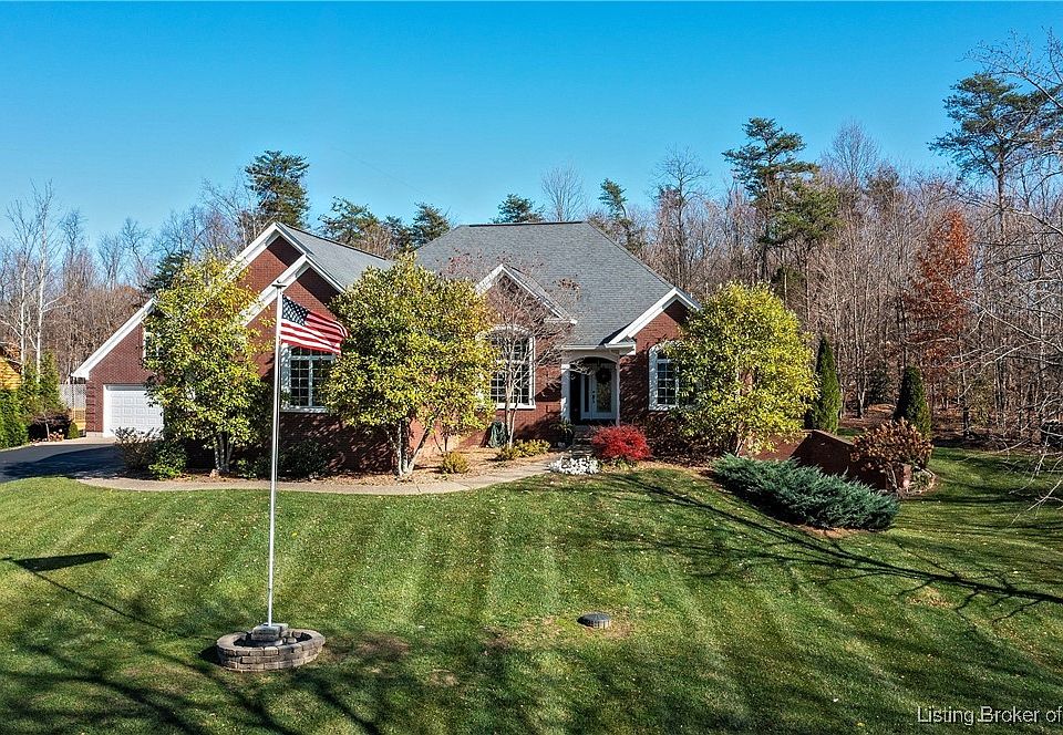 Just what you’ve been waiting for—a sprawling ranch on a 1.3 acre pristine lot with treed privacy! A gracious foyer entry opens to formal dining and dramatic great room w/fireplace, extensive millwork & soaring ceilings. The chef’s kitchen features granite countertops, breakfast bar, custom backsplash, corner pantry, and dining area overlooking the private lawn. The split bedroom floorplan offers a private primary suite with cozy sitting room, access to private covered deck, and spa-like bathroom w/extended vanity, frameless shower & garden tub, as well as a walk-in wardrobe closet. Two other generous bedrooms sharing a hall bathroom, and the laundry room, complete this level. A striking architectural window floods natural light onto the split staircase leading to the walkout LL—perfect for entertaining with an open layout featuring a full kitchen/wet bar, rec/billiards area, family room, studio/office, guest bedroom and full bath. Outdoor living spaces include a side patio and another covered deck, enveloped by the surrounding lush landscaping. In addition to the attached 2-car garage, there is a brick paver walkway leading from the outdoor living spaces into an oversized additional garage with workshop space & staircase to a full attic that could be finished—for the auto or hobby enthusiast! Fantastic location near Highlander Point w/easy access to expressway, shopping, schools, dining & more!!