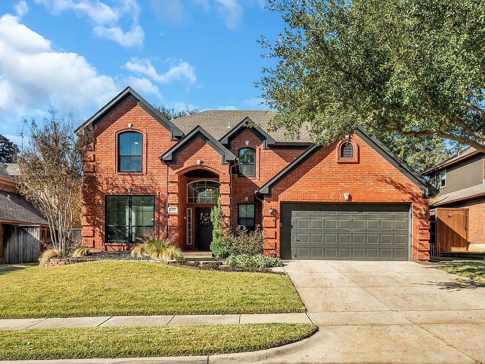 Don't miss this beautiful home on a quiet, secluded street in beautiful Woodlake Estates! This home is just steps away from the neighborhood access to the extensive Northshore trail system on Lake Grapevine. Also, just a short walk to popular Lakeside restaurants and shops! Many recent updates include all new flooring, a new patio and updates to create an open eat-in kitchen with oversize island. New windows and HVAC units were installed in 2021. Large primary suite includes separate his and hers closets. Spacious utility room with countertop for folding. Enjoy entertaining in your backyard with amazing large Oak trees providing generous shade. An additional living space upstairs would be ideal for an office, playroom, or media area. This Flower Mound location can not be beat!