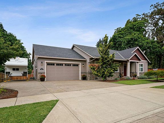 Accepted Offer with Contingencies. Perfect for entertaining & comfortable single lvl living! Great outdoor spaces, lrg Rv/boat storage! Two established old growth trees for the most picturesque backdrop & an extended covered patio with fully fenced in yard, plus an above ground pool area w/ lrg deck surround! Single lvl plan features lrg open vaulted living/kitchen, spacious dining, large luxe primary brm & bath, New carpet June 2025 & wood flooring thruout the living, all in great condition & move in ready! Extra lrg garage w/shelving!