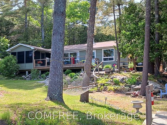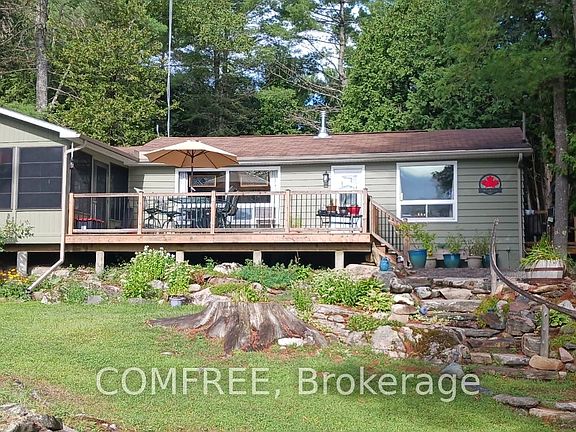Cozy WATERFRONT 4 season cottage with year round access was used as a home for the last seven years. This 3 bedroom bungalow which was converted to 2, can easily be restored back to 3. Bright living room and kitchen provide breathtaking views of the lake. There is a 3 piece bathroom and laundry facilities. Picture yourself enjoying a gathering in your bug free environment in the amazing 24' x 12' sunroom accessed from the living room or the lakeside deck. Propane and electric heat sources are available during the winter months. The crawl space is insulated and heated. The property level access on the north shore of beautiful Silver Lake makes it a perfect place to relax and enjoy all it has to offer. Great fishing, boating and swimming. Backup power is included in the event of power failures. This property offers 4 decks, a 24' x 12' deck on the lakeside, a 6' x 12' deck off the side entrance, another off the guest room 6' x 10' and a 10' x 10' deck at the water's edge. There is an 8' x 16' floating dock perfect for lounging and a 16' x 4' dockmaster to dock your watercrafts. Enjoy time on the lake with the included raft, paddle boat and kayak. The location is quite convenient being only 15 minutes from Sharbot Lake, 25 minutes from Perth & Westport and 1 hour from Kanata & Kingston. Various upgrades including; 2018 - attic reinsulated. 2019 - new soffits, fascia and gutters with leaf guards, drilled well including heat line, Generlink & Generator system. 2020 - new front and side decks. 2022 - laundry facilities. 2024 - new well water treatment system including: hot water heater, pre-filters, water softener, U.V. light, pump & water tank for lake drawn water system perfect for watering the beautiful perennial rock gardens. 2025 - new back deck. Private Road to Property Access.