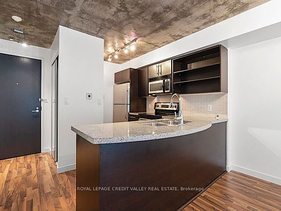 Welcome to your new home in the highly sought-after DNA Condos! Priced to sell! This bright and spacious 1-bedroom, 1-bathroom unit offers a functional layout with ample space for a dining area and a dedicated home office nook ideal for today's lifestyle. Featuring laminate flooring throughout, exposed concrete ceilings for an urban-chic feel, and a south-facing balcony overlooking the peaceful and quiet courtyard perfect for morning coffees or evening relaxation. Enjoy the convenience of ensuite laundry and modern finishes. Situated just steps from the TTC, grocery stores and local parks, and only minutes to the vibrant shops, restaurants, and nightlife of King West, Queen West, and Liberty Village. Don't miss this opportunity to live in one of Toronto's most dynamic neighbourhoods!
