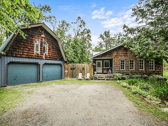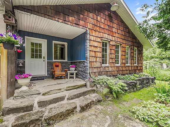 A Rare Opportunity! Discover a property that truly has it all perfectly blending indoor luxury with outdoor serenity. This exceptional custom-built home offers ideal spaces for family gatherings, gardening adventures, and starlit bonfire nights. Eco-Conscious & Low Maintenance: Equipped with solar panels that reduce utility costs and generate income, a metal roof, and vinyl siding for hassle-free upkeep. Prime Location: Just a short stroll to Kirby's Beach and the pristine waters of Lake Muskoka and offering private pool, hottub and sauna. Don't be fooled by the proximity to the beach as the private oasis that you enjoy in this back yard is unbelievable. Impeccably Designed: Lovingly maintained since construction, featuring:A cozy Muskoka room, Spacious primary bedroom with ensuite and walk-in closet, Two additional well-sized bedrooms, Generous foyer with ample storage, Bright interiors with large windows throughout. Warm & Welcoming Interiors: Open-concept layout anchored by a central woodstove that radiates charm and comfort. Sunlight pours in, creating an inviting ambiance. Functional & Flexible Layout: Boasting 3 bedrooms and 2 full bathrooms, plus a sauna accessible via the Muskoka room.