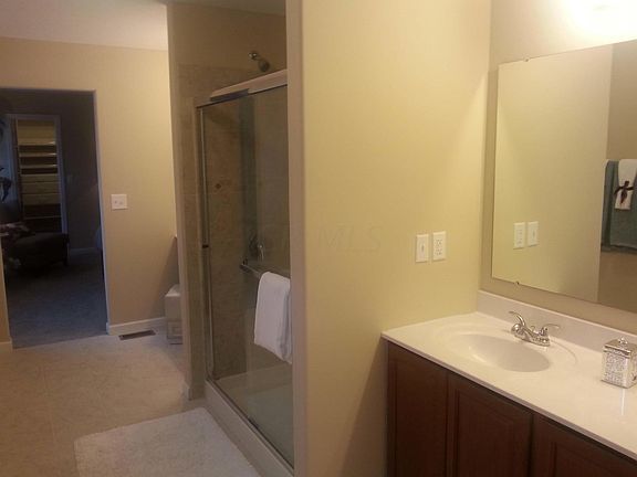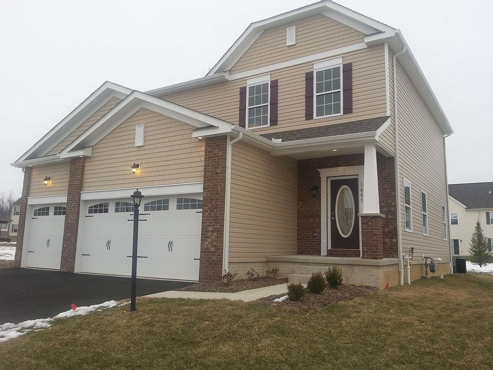 Model Home in Pataskala. Lots of upgrades! Move in May 2016! Awesome 3 bedroom, Loft, 2.5 bath. Open modern floor plan, family room that opens into your outstanding open kitchen which is great for entertaining. Nine foot ceilings, hardwood flooring, recessed lighting, four room speaker system, upgraded kitchen 42” quality cabinets, large island with veg sink, stainless steel appliances, and recessed lighting. Room for large 6-8 person kitchen table which then opens to a 160 square foot sunroom and deck! Master has two large walk in closets and the master bath has double vanities and an upgraded 5’ tile shower! Huge upstairs laundry room offers a sink and counter. One bedroom offers a walk in closet while the other has a double closet. The fully excavated basement has bath rough-ins