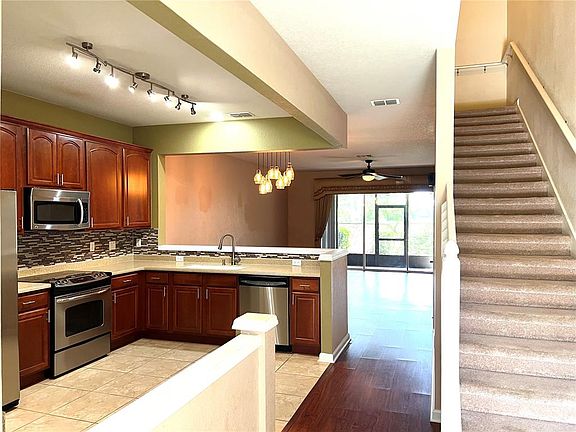 Beautiful immaculate townhome is in a desired gate community. Open floor plan . 42" cabinets and upgraded kitchen with SS appliance. New carpet in 3 bedrooms and hallway. Cover screen lanai. No rear neighbors. New roof. HOA includes: Water, Sewer, Trash, Exterior maintenance, Lawn care. Convenient access to major high way. Close to restaurants and shops. Move in Ready !!!