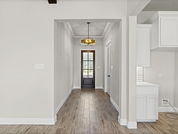 Welcome to this exceptional 2-acre property in Peaster ISD set back from the road in a canopy of mature trees, this thoughtfully designed living space is functional and family friendly with endless possibilities. You will love how seamlessly this home blends modern luxury with timeless style, featuring soaring vaulted ceilings with exposed beams, an inviting floor to ceiling stone fireplace, and abundant natural light throughout. The chef’s kitchen is a showstopper with quartz countertops, designer tile backsplash, staineless steel appliances, a walk-in pantry, and a spacious island perfect for hosting family and friends. The open floor plan flows into a warm and welcoming living area, creating an ideal space for entertaining. A dedicated home office provides privacy for work or study, while the mudroom adds convenience and functionality. The primary suite is a true retreat with a spa-like bath featuring a soaking tub, walk-in shower, and generous closet space and connects to the laundry room for added convenience. Secondary split bedrooms feature walk in closets & ample space. Step outside to enjoy your acreage, where mature trees and wide-open spaces offer endless possibilities for relaxation, play, or future outdoor living additions. Don't miss out on this wonderful opportunity!