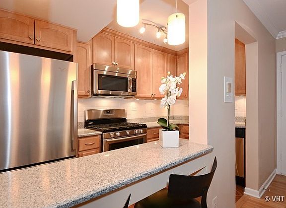 Sunny and Bright Condo in Evanston with South East Exposure. Completely renovated w/absolutely beautiful kitchen! Brand new stainless appliances, granite counters & kitchen island w/eat-in bar. New bath, new blinds, newer windows, hardwood floors throughout, nice open floor plan, in-unit laundry, good storage & parking included in the price! This unit has it all.. including a great location in walking distance to the bus, L, Metra, shops & restaurants, parks & the lake. Parking #5
