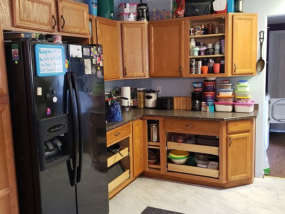 Back deckFront yardCorner lotOpen concept living spaceFamily room