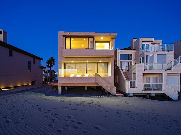 Very nice contemporary beachfront home at Mandalay Beach. Original owner, never lived in full time. Open floor plan with ocean views from dining area, kitchen, and high ceiling beachfront living room. Wall to wall and ceiling to floor center out sliding glass doors open to large beachfront deck with direct access to the sand, Each bedroom has attached bathroom. Den/tv room has attached half bath. Pocket doors close for privacy, can be additional spare bedroom. Master bedroom suite on beachfront side of house with outside deck. Laundry room in house, and a rare 4 car garage. Great ocean, island, whitewater, sunset, and coastal views out over the Santa Barbara channel to the Channel Islands...