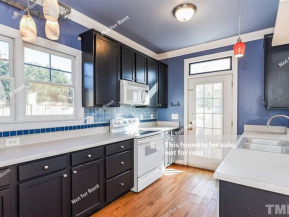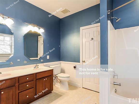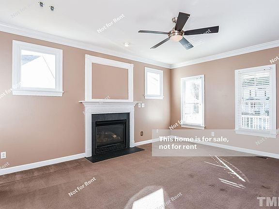 This Apex home offers a gas fireplace, a master bedroom walk-in closet, master bathroom dual sinks, and a two-car detached garage.
