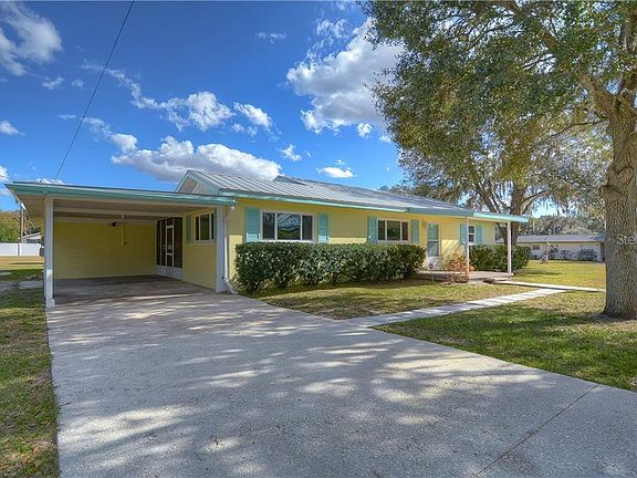 This charming home on 3/4 of an Acre will not last long! NO HOA, NO CDD!! Gorgeous new kitchen with shiplap walls, all new whirlpool stainless steel appliances, Quartz countertops, and lots of light with 2 kitchen windows overlooking the HUGE back yard. The family room has a built-in space-saving TV console and brand laminate floors. 3 bedrooms, all with cedar closets, 2 full bathrooms, and a 1 car garage. Lots of upgrades have been made to include crown molding, Real wood 6-panel doors, upgraded oil rubbed bronze hardware, and more! You will love the outside Bar which was custom made and the built-in TV bracket will convey with the home. Storage shed has electrical, can be a workshop, storage, or she-shed. The Washer and Dryer, along with the utility sink are in the garage the plumbing has been updated and AC was recently replaced. Metal roof is 9 years old. Brand New water heater. Come see this quiet country home that's still close to everything!