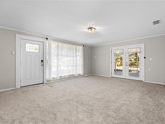 Welcome to this charming two-bedroom, one-bath home nestled on a large lot surrounded by majestic mature oak trees and beautiful landscaping. Located in the heart of Cottage Hill, this home offers both comfort and convenience—just minutes from schools, restaurants, shopping, and major routes. Inside, you’ll find a warm and inviting layout featuring a mix of new carpet and stylish luxury vinyl plank flooring, updated light fixtures, and ceiling fans throughout. The home is filled with natural light from its many windows. Both bedrooms are generously sized and offer great closet storage. The kitchen is bright and functional, with pretty pretty cabinets, black appliances, updated countertops, and an extra moveable cabinet with storage and butcher block countertops, making meal prep a joy. An extra-large room provides flexible living options—perfect as a formal dining area, additional den, bonus room, or home office. A bright sunroom with large windows offers a relaxing space to enjoy your morning coffee or unwind in the afternoon. The bathroom includes a tub-shower combo and a unique white-painted wood ceiling that adds a touch of cottage charm. Beautiful French doors open to a large covered porch with string lighting—ideal for entertaining or simply enjoying the peaceful surroundings. The large fenced backyard also includes a separate storage shed for extra belongings. This delightful home truly has it all—character, functionality, and a fantastic location. Don’t miss your chance to make it your own! Per seller-Roof 8-9 yrs old, HVAC 4 yrs old, water heater 4 yrs old, LVP flooring 4 yrs old, all carpet new including the sunroom, kitchen appliances 4 yrs old, stacked washer/dryer combo 6 yrs old, exterior security lighting 4 yrs old, additional cabinets in kitchen w/butcher block top 4 yrs old. ***Buyer/Buyer's agent is responsible for verifying all measurements and important information to the buyer before closing.