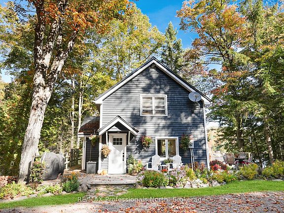Welcome to this fully renovated 4-season waterfront home or cottage on sought-after Soyers Lake, part of Haliburton's desirable 5-lake chain. Offering 96 feet of owned frontage with a sand beach, private boat launch, and endless boating opportunities, this property is ideal as a year-round residence, family retreat, or investment with owned shoreline road allowance. The 2-storey home features 1017 sq. ft. of living space with 2 bedrooms and 2 bathrooms, forced air propane, and A/C. The main level offers an open-concept living and dining area flowing into the updated kitchen, complete with quartz countertops, mosaic backsplash, hammered copper sink, and pot filler. A 2-piece bath and multiple walkouts to large decks overlooking the water complete the main floor. Upstairs, find 2 generous bedrooms and a 3-piece bath, including a primary with walk-in closet. Outdoor living is exceptional with expansive decks at both the cottage and shoreline, lakeside storage shed, and a dock for swimming and boating. A detached, heated and insulated bunkie provides additional sleeping space and is connected to a garage/workshop for storage or hobbies. Enjoy year-round comfort with a drilled well and easy access on a municipal road. Centrally located between Haliburton and Minden for shopping, dining, and amenities. By boat, head to the Haliburton docks for the farmers market, dining, or groceries, enjoy sunsets and fine dining at Bonnie View Inn, or stop at Kates Burgers for ice cream and snacks. This mostly turn-key property is a rare opportunity to own a move-in ready home on a prime lake in Haliburton.