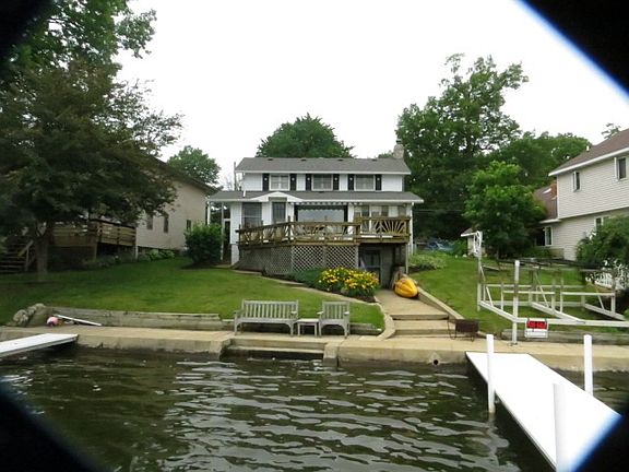 Great spot on Sylvan Lake!! Sixty feet of Lake Front, an all sports lake with skiing from sunrise to sunset. Great views of the lake from the main level Great Room/Dining Room area. Living room boasts wood teak ceiling and trim and wood burning fireplace. The Upper level has three bedrooms and full bath. The basement walks out to the concrete seawall and pier/dock. Carport and parking for 5 cars. This is an exceptional lake front property and a must see!!