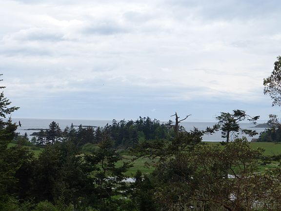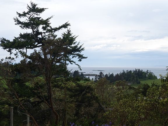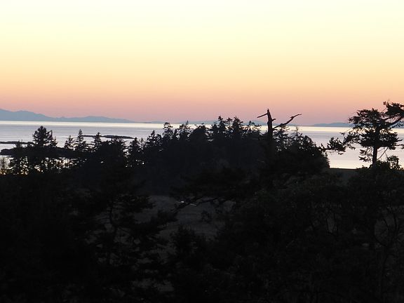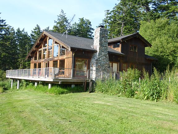 Spectacular western views from the Olympic Mountains to Victoria on Vancouver Island from this Northwest Contemporary 3 bedroom 2 bath home on private, wooded 11.56 acres. The home has cathedral ceilings and 1000 sq. ft deck for enjoying the western sunsets over the islands. The light house at Cattle Point is in the middle of your view. A 2 bedroom 1000 sq. ft. guest house in a private setting away from the main house has weekly rental permit. An old barn has studio/office, with an outside arena
